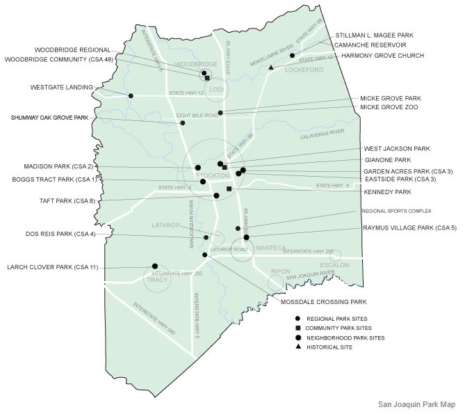 Description: Parks (and related green spaces) - San Joaquin County, CA.